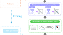 where \(x_i^t\) represents the position of the ith particle in iteration t, and \(v_i ^ {t+1}\) is the velocity of the particle in the next iteration \(t+1\). \(\omega \) denotes the inertia weight introduced in Ref.44, \(c_1, c_2\) are personal and global parameter, and \(r_1, r_2\) are the random number within [0, 1]. \(pbest_i^t\) indicates the personal best value for the ith particle, and \(gbest^t\) is the global best value in the swarm.