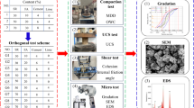 Hamid et al.32 investigated the impact of alkali activated slag cement on the mechanical strength of saline sandy soils. The unconfined compressive strength (UCS) of geopolymer treated soils rose by 340–952% compared to untreated soils, and the geopolymer gels, C–A–S–H/N–A–S–H gels, joined the soil particles. Lv et al. 33 studied the curing effect of lime, lime-FA, and lime, FA, and sodium silicate on sulphate saline soils. The best results were obtained when the sulphate content was 1% cured, and the two types of stabilised soils, lime-FA and sodium silicate, had a higher UCS than the other two types of stabilised soils when the saline content was kept constant. Ca2+ plays a vital role in FA activation hardening and mechanical properties34,35, and dissolved Ca2+ in FA acts as a charge-balancing cation and also forms C–S–H gels. Van Deventer 36 showed that Ca2+ plays a significant part in the rapid hardening of gel materials by providing additional nucleation sites. Temuujin et al.37 found that adding active calcium compounds such as CaO and Ca(OH)2 to FA increases mechanical characteristics while speeding up the cementation procedure. Zhao et al.38 discovered that adding Ca(OH)2 to FA considerably boosted strength, but that adding too much Ca(OH)2 increases the danger of strength decrease. Duan et al.39 investigated the addition of SF to FA, which expedited the consolidation reaction via Ca(OH)2 consumption and dramatically increased compressive strength at 28 days40. Ca2+ plays an important role in the hardening and mechanical characteristics of geopolymers. There has also been little investigation into using NaOH as an alkali activator and Ca2+ as a supplement material to increase FA geopolymer resistance to saline soils stabilisation.