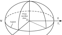 where, \(r_{A}^{{{S_i}}}\) and \(r_{B}^{{{S_i}}}\) are the geometric distances between UAVs A and B to satellite Si; \(\delta {t_A}\) and \(\delta {t_B}\) are the time differences between the airborne BDS receivers on UAVs A and B; c and \(\delta {t_{{S_i}}}\) are the variances between the vacuum velocity and satellite clock time difference; \(\varepsilon _{A}^{{{S_i}}}\) is the airborne BDS receiver used to measure noise; \(\varepsilon _{{A1}}^{{{S_i}}}\), \(\varepsilon _{{A2}}^{{{S_i}}}\) and \(\varepsilon _{{A3}}^{{{S_i}}}\) are the ionospheric delay, tropospheric delay and satellite ephemeris error, respectively, of the UAV A observation satellite; \(\varepsilon _{B}^{{{S_i}}}\) is the noise measurement for UAV B airborne BDS receivers; and \(\varepsilon _{{B1}}^{{{S_i}}}\), \(\varepsilon _{{B2}}^{{{S_i}}}\) and \(\varepsilon _{{B3}}^{{{S_i}}}\) are the ionospheric delay, tropospheric delay and satellite ephemeris error, respectively, of the UAV B observation satellite.