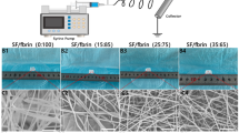 The samples with varying ratios were produced through the process of electrospinning, with the nanofiber morphology illustrated in Fig. 12(a–c). It is evident that the resulting fibers were free of any beads. The average diameter of SF:TPU-1/1, SF:TPU-3/7, and SF:TPU-7/3 were approximately \(\left(1.052 \pm 0.297\right) \mu m\), \(\left(1.353 \pm 0.624\right) \mu m\), and \(\left(0.389 \pm 0.107\right) \mu m\), respectively, which aligns with findings from earlier studies15,37.