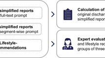 We achieved low to moderate ROUGE and BERTScore scores compared to the literature. However, it is difficult to compare the absolute metrics with other studies because we compared the generated summaries with those written by physicians. Most other studies use these metrics as relative values to compare summaries generated by different language models on the same base text within the self-contained systems of their studies9,23,27. In particular, ROUGE-L could suffer from our approach of generating texts from structured data, which are typically short concepts that do not lead to long overlaps with texts written by physicians. Our qualitative survey findings are in line with those of Aali et al.24, who conducted a similar survey. Although they do not report numbers, according to the violin plots of their publication, GPT-4 achieved the highest ratings (average 4–5, small standard deviation), while LLaMA2-13B and physician-written summaries were rated lower, but at a comparable level (comprehensiveness/factual accuracy: average 2–3, very large standard deviation; conciseness/fluency: 3–4, large standard deviation). Considering Table 6 the LLaMA3 model used in our study appears to fall between GPT-4 and LLaMA2 in terms of performance across all criteria.