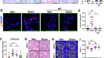 The loss of bone mass with chemotherapy has been associated with a decrease in osteoblasts and an increase in osteoclasts15,16,17,18,19. Expression of osteoblast and osteoclast markers mRNA from whole vertebral bone showed that Bglap (osteocalcin) and Alpl (alkaline phosphatase) was reduced by AC, while the osteoclast markers Acp5 (Trap) and Ctsk (cathepsin K) were not impacted (Fig. 1e). D + Q did not alter the decrease in Bglap or Alpl caused by AC. Two-way ANOVA analysis (Supplementary Table S1) indicated that, overall, AC decreased the expression of the osteoblast marker genes, while the osteoclast markers were decreased (Acp5) or unchanged (Ctsk). Previous work shows that loss of bone mass with chemotherapy still occurs in the presence of a bisphosphonate, used to halt bone resorption55, indicating that a decrease in osteoblasts and bone formation are critical mediators of the effects of chemotherapy.