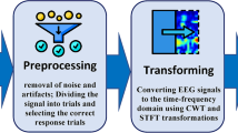 The synchrosqueezing transform is an innovative technique used to represent non-stationary EEG signals through TF method35. Daubechies et al. introduced an adaptive SSWT as a signal-processing method. Likewise, the wavelet transform disassembles signals by matching them with a set of TF elements. However, the analysis from the wavelet transform might be less sharp due to the associated TF spreading. The SSWT enhances TF representation sharpness and localization properties by synchro-squeezing and reallocating the TF spectrum36. It represents a post-processing technique following CWT. The CWT of the input EEG signal \(x\left(t\right)\), utilizing \(\psi (t)\) as the mother wavelet, and incorporating parameters \(c\) for scaling and \(b\) for translation, is expressed as: