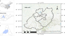 where \({Y}_{i}\) represents the dependent variable, an independent variable, \(\left({u}_{i},{v}_{i}\right)\) is the geographic coordinate of the \(ith\) point, \({\beta }_{0}\left({u}_{i},{v}_{i}\right)\) is the intercept of the \(ith\) point, \({\beta }_{k}\) \(\left({u}_{i},{v}_{i}\right)\) is the coefficient of \({X}_{ik}\), and \({\varepsilon }_{i}\) is the residual of the \(i\) point.