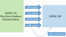 Dataset_MIMIC is an online public dataset, a subset of the Multiparameter Intelligent Monitoring in Intensive Care (MIMIC) II waveform database. ECG, fingertip PPG and invasive arterial BP waveforms were recorded from patients across various hospitals, with a sampling rate of 125 Hz for each signal. Data were initially filtered by simple average filtering. Segments with abnormal BP values outside 20–200 mmHg, or irregular heart rates were removed30. After excluding recordings shorter than 8 min, 1,925 recordings remained for further analysis.