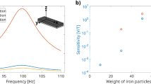 The stator dimensions along the X-axis, Y-axis, and Z-axis are 5 mm, 25 mm, and 15 mm, respectively; the diameter and length of the rotor are 3.9 mm and 30 mm; the centre-to-centre distance between the stator and rotor is 19.3 mm, with the shortest distance from the stator to the rotor’s cylindrical surface being 14.9 mm; the equivalent length and width of the coil are 70 mm and 50 mm, respectively, with 100 turns in the coil, and the effective intensity of the current in the coil is 0.1A. The stator and rotor are NdFeB, with residual magnetization \(B_r=1.25\textrm{T}\) and magnetic permeability \(\mu _r=1.09\)29. Therefore, the torque parameter \(T_{sxs}=0.0185\), \(T_{szs}=1.88 \times 10^{-4}\), \(T_{cxc}=6.46 \times 10^{-8}\), \(T_{czc} = 1.1 \times 10^{-4}\), \(T_b = 5.06 \times 10^{-6}\), the equivalent parameter \(k=3.66 \times 10^6\), \(T_f = 1.01 \times 10^3\), \(F = 2.20 \times 10^4\). The natural frequency of the mechanical antenna can be calculated using the equivalent stiffness, \(f_n = \sqrt{k}/(2\pi )=304\,\textrm{Hz}\).