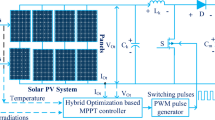Diverse studies have explored various MPPT techniques to increase the efficiency and robustness of photovoltaic PV systems under dynamic operating scenarios. Conventional algorithms such as Perturb and Observe (P&O)9,10, Hill Climbing11,12 and Incremental Conductance (InC)13,14,15 are widely used due to their simplicity. However, these methods rely on fixed step sizes for duty cycle adjustments, leading to compromise between tracking speed and accuracy near the MPP. While these methods perform reasonably well under stable conditions, their effectiveness decrease under changing environmental conditions or abrupt load variations, resulting in power losses and reduced efficiency16,17,18. Recent research highlights the limitations of traditional MPPT techniques under partial under fluctuating sun irradiance, under partial shading conditions and load variations, emphasizing the need for adaptive or intelligent MPPT strategies capable of maintaining optimal performance across diverse operating scenarios19,20,21.