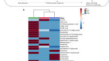 Differences in the types and contents of glucosinolates were noticed between CHE and OLE (Table 1). The content of aliphatic glucosinolates was relatively high in OLE. In particular, the levels of glucoerucin, glucoalyssin, gluconapoleiferin, and gluconapin in OLE were higher than those in CHE (trace amounts). Additionally, the contents of indole glucosinolates (4-hydroxyglucobrassicin, neoglucobrassicin, and glucobrassicin) and aromatic glucosinolates (gluconasturtiin) were relatively high in OLE. Total glucosinolate contents were 14.57 and 45.09 µmol g− 1 in CHE and OLE, respectively. Meanwhile, the vitamins identified in cabbage extracts were C and K1, with vitamin C detected only in OLE (0.14 µmol g− 1) (Table 2). Sulforaphane was not detected in CHE but was found in trace amounts in OLE.