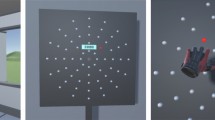 The VR environment presented a virtual laboratory. The hand position, tracked via the VR gloves, was visually represented in the virtual space either as a hand (without an arm) or as a cursor at the wrist, depending on the experimental conditions (see Fig. 6b). The cursor, with a diameter of 0.5 cm, was positioned precisely at the output position of the VR glove. The participants’ real arms were fully occluded by the VR headset to ensure exclusive reliance on virtual visual feedback.