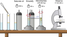 The size of emulsions and antibubbles was evaluated by analyzing microscopic images using ImageJ31 software (version 1.54 g). For each sample, 100 measurements were carried out in triplicates. Images obtained using a 100 × objective lens were used for PE, while images obtained using a 20 × objective lens were used for the DE and antibubbles.