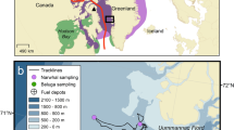 Eclipse Sound in the eastern Canadian Arctic (Fig. 1) is a summering area for a distinct population of narwhals10,11,12,13,14 and has recently seen a substantial increase in ship traffic, due primarily to the expansion of a regional mining project and an increase in vessel-based tourism15,16. This connected system of inlets and fjords is traversed by a shipping corridor used to transport iron ore and other cargo during the open water season16. Pond Inlet is a regular stopover for passenger ships and pleasure craft visiting the region. From 2015 to 2019, there was a 384% increase in one-way vessel transits through the eastern entrance to Eclipse Sound, with > 80% of that increase related to the development of a regional mining project and the remaining 20% primarily due to an increase in vessel-based tourism16. Summer estimates of narwhal abundance within Eclipse Sound dropped from 20,200 in 200413 to 10,489 in 201317, to 4,381 and 2,081 in 2020 and 2021 respectively2. This concurrent decline in Eclipse Sound narwhal regional abundance has elevated concerns about potential shipping impacts on this population.