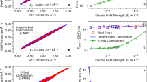 There are several alternatives for the construction of ML-based FFs, such as Gaussian process regression or fully connected neural networks (NNs)32,33,34,35, and ML models are increasingly used in the field of materials science. In particular, it has been confirmed that they show great potential for large scale simulations of solids but, instead, the use of MD simulations combined with ML interatomic potentials (ML-MD) for exploring molecular liquids can be considered to be still in its infancy. Among the few examples that can be found in the literature, Magdǎu et al.36 presented a ML potential for the ethylene carbonate/ethyl methyl carbonate binary solvent, identifying the key challenges in developing this kind of models. Very recently, Shayestehpour and Zahn37 trained a ML interatomic potential for simulating deep eutectic solvents with thousands of atoms during \(2-3\) nanoseconds. For a mixture of 64 choline chloride and 128 urea molecules they obtained structural and dynamical properties in good agreement with the results from experiments and AIMD simulations. Moreover, He and coworkers38 developed a ML-based FF for 10 different IL pairs and one bulk of 1-ethyl-3-methylimidazolium tetrafluroborate ([EMIM][BF4]) with 32 ionic pairs. After performing 1 ns-long ML-MD calculations, they reported a simulated efficiency comparable to classical FFs but with the precision of DFT methods. Also in the field of densely ionic solvents, Montes-Campos et al.39 pioneeringly reported NeuralIL, a NNFF for ILs that was tested on 15 ionic pairs of ethylammonium nitrate (EAN) for 80 ps-long ML-MD simulations. NeuralIL can be employed to calculate quantities requiring long trajectories or large samples of configurations with ab initio accuracy and with orders-of-magnitude savings in computational cost. In a more recent paper40, they show how a committee of neural networks is able to estimate the error of the force prediction and how re-training the neural network with configurations extracted from MD performed with NeuralIL greatly increases the acccuracy of the predicted forces. Concerning the use of ILs as electrolytes in lithium-ion batteries, a crucial aspect that must be considered is the formation and evolution of the solid-electrolyte interphase (SEI) layer between the anode and electrolyte, as a product of electrochemical decomposition. Nevertheless, very little is known about the SEI due to the complexity of carrying out in-situ characterization, making it an ideal issue for computational modeling. Although remarkable advances have been made to predictively model the fundamentals of the SEI41, it is a very complicated and heterogeneous structure that acts as an electronic insulator but as an ionic conductor, and whose growth spans multiple time- and length-scales, so none of the existing computational methods is completely suitable to the task of simulating such a complex system. Thus, everything points to classical MD simulations powered by a NN potential as the most effective tool to gain a detailed understanding of the interface chemical reactivity leading to SEI formation and evolution. An appropriate knowledge of SEI chemical composition and reaction dynamics is of key importance to design optimal electrolyte/electrode combinations.