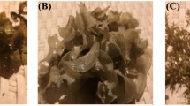 Phlorotannin content was observed using the Folin-Denis assay as followed by Stern, et al.49. The Folin-Denis reagent was prepared by dissolving 25 g of sodium tungstate (Na₂WO₄·2 H₂O) and 5 g of dodecamolybdophosphoric acid (12MoO₃·H₃PO₄·H₂O) in 175 mL of distilled water. To this, 12.5 mL of phosphoric acid was added, and the solution was refluxed for 2 h before being made up to a final volume of 250 mL. For the assay, 5 µL of the sample was combined with 20 µL of Folin-Denis reagent, 40 µL of saturated sodium carbonate solution, and 125 µL of distilled water. The mixture was incubated in the dark for 2 h, and absorbance was measured at 725 nm. A phloroglucinol standard curve (0–100 µg/mL) was used to determine the total phlorotannin content, expressed as milligrams of phloroglucinol equivalents per gram of dry weight (mg PGE/g d.w).