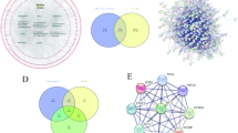 Using the TCMSP (https://old.tcmsp-e.com/tcmsp.php) database14, we applied screening criteria of oral bioavailability (OB) ≥ 30% and compound drug-likeness (DL) ≥ 0.18 as screening conditions to identify active compounds, including (2R, 3R) 3-(4-hydroxy-3-methoxy-phenyl)-5-methoxy-2-methyl-2,3-dihydropyrano [5,6-h][1,4]benzodioxin-9-one (chloramphenicol A), 11-hydroxysec-o-beta-d-glucosylhamaudol_qt, anomalin, divaricatacid, divaricatol, Ammidin, ledebouriellol, phelloptorin, 5-O-Methylvisamminol, Phellopterin, sitosterol, wogonin, beta sitosterol, Mandenol, isoimperatorin, Prangenidin, methyl icosa-11,14-dienoate, and Decursin from S. divaricata. The identified active ingredients were subsequently imported into the PubChem database (https://pubchem.ncbi.nlm.nih.gov/)15 to retrieve their SMILES numbers or chemical structural formulas. SMILES numbers or chemical structural formulas of active ingredients were imported into the SwissTarget prediction database (http://www.swisstargetprediction.ch/)16 to ascertain potential targets associated with traditional Chinese medicine drugs.