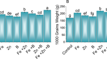 Moreover, the foliar application of Boron has been shown to enhance the phloem mobility of Boron to floral parts, which is vital for improving grain partitioning and overall yield37,38. highlighted that Boron deficiency indirectly affects photosynthesis by reducing chlorophyll and soluble protein levels in leaves, which in turn restricts the activity of photosynthetic enzymes, hindering the Hill reaction and decreasing net photosynthesis. Therefore, appropriate foliar application of Boron and Boron + FA results in increased chlorophyll and carotenoid content, as well as efficient Boron accumulation in the leaves and grains of rice plants, thereby enhancing photosynthetic efficiency and overall grain yield.