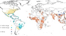 The niche models were constructed using minimum volume ellipsoids (MVEs), implemented in the ntbox package39using 70% of the presence data used for training and the remaining 30% for evaluation of the spatially filtered dataset. We chose to employ MVEs for several key reasons: (a) their convex shape is coherent with biological expectations about fundamental niches47; (b) theoretical and applied works point out that the distance to the center of an ellipsoid is related to some fitness attributes such as population abundance and genetic diversity48,49,50; and (c) fitting MVEs involves significantly fewer decision-making steps compared to other software-based methods51. The selection of the best model was based on significance criteria of the partial-area ROC curve, omission rate (E = 0.05), and the binomial test39. A total of 120 candidate models were generated, of which only 82 met the omission criterion for both training and evaluation data. For representing the suitability of the species, we chose a combination of two sets of models. For the estimate of the binary suitability we selected the model formed by bioclimatic variables 1 (mean annual temperature) and 14 (precipitation of the driest month) which is the model that under visual inspection best coincides with known historical distribution of the species in the 20th century for the extent of study (-123, -59, 3, 37; xmin, xmax, ymin, ymax) under a threshold of 10th percentile from the set of occurrences used for training the model. Subsequently, we obtained the median of the 10 best models according to the omission rate and AUC ratio criterion (see Supplementary Table S2).