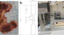 Healthy and meshed skin samples were obtained from Razi Hospital in Rasht (Fig. 1a, b). After being removed from the patient’s body, the samples were placed in 0.9% normal saline solutions and sent to the laboratory in insulated packaging with ice. The tests were conducted within 8 h. During the testing, the samples were kept in 0.9% normal saline at 37 °C to maintain their biological conditions. Figure 1 shows images of both samples before sectioning.