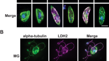 Live parasite samples were assessed, and images captured, on a Zeiss LSM880 laser scanning confocal microscope using an 100x oil objective and ZEN software (Zeiss), as described34. At least two clonal populations of transgenic parasites were compared to ensure results were consistent and representative.