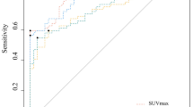 The AUC for the disc shape was the lowest (0.752; range, 0.651–0.854), and the AUC for SUVmax was 0.846 (range, 0.771–0.921). However, the AUC was the highest (0.889; range, 0.825–0.952) when SUVmax and disc shape were considered simultaneously (SUVmax + disc shape). AUCs were not significantly different between disc shape and SUVmax (p = 0.391) and between SUVmax and SUVmax + disc shape (p = 0.125). However, there was significant difference in AUC between disc shape and SUVmax + disc shape (p = 0.023). (Fig. 6)