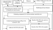 Several factors, including environmental conditions, loading characteristics, and material properties, influence HMA’s fatigue performance. Among environmental factors, moisture is widely recognized as a critical contributor to extensive pavement deterioration4. Moisture in asphalt pavements may originate from internal or external sources. Complete exclusion remains challenging despite measures implemented to prevent moisture infiltration into the pavement layers5. When conditions allow water to accumulate on the HMA layer’s surface, moisture can penetrate the mixture due to air voids (AV). This infiltration disrupts adhesion between the bitumen and aggregate, subsequently weakening the HMA’s structural integrity. Furthermore, moisture exposure hardens the bitumen, increasing its susceptibility to fatigue and thermal cracking6,7.