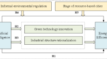 First, AI, as a representative technology of the fourth industrial revolution, is leading human societal development and transformation through its technological economic characteristics such as permeability, substitutability, synergy, and innovation30. On one hand, AI can change the original development model, assist users in decision-making and monitor other equipment during use, or replace humans in performing some complex tasks in certain fields, improving labor sector productivity and factor utilization rates31. This allows enterprises to reduce factor inputs while increasing output to some extent, promoting the growth of GTFP. On the other hand, AI promotes value addition through complementary innovation at various stages of production, and with technologies like big data and cloud computing, makes the production process transparent32. It guides industries to shift from high pollution and high energy consumption production methods to those with advanced production techniques and clean and efficient processes. Based on this, the paper proposes the following hypothesis: