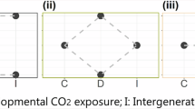 Furthermore, the majority of OA studies have been conducted at stable, elevated CO2 levels, thereby neglecting the temporal fluctuations in CO2 levels resulting from a variety of biological and physical processes in coral reefs, coastal zones, and shallow water habitats27,28,29. Coral reefs are highly dynamic and undergo daily cycles of CO2 variation resulting from photosynthesis/respiration, calcification/dissolution, and physical factors like flow rates and trajectory30,31,32. Studies incorporating diel CO2 oscillations have shown reduced severity of behavioural abnormalities observed in stable elevated CO2 environments33,34. Additionally, ecologically and evolutionarily important traits such as survival, growth, and metabolic function appear to be less affected by elevated CO2 in fluctuating compared to stable environments35,36,37. This disparity may be attributed to differences in the magnitude of circadian control of these biological processes in stable versus fluctuating environments21. In fact, the brain transcriptional profile of coral reef fishes differed significantly between those exposed to stable and fluctuating CO2 conditions with distinct regulation of circadian rhythm genes in each environment21. Therefore, one of the mechanisms potentially facilitating the increased flexibility of the biological responses of fish to pH changes in diel fluctuating environments could be the adjustment of circadian rhythm. As CO2 uptake by the oceans continues to rise, these natural CO2 fluctuations will intensify as seawater buffering capacity diminishes32,38. In light of the ongoing amplification of global environmental changes and heightened environmental variability, it is imperative to incorporate these fluctuations, which mirror the natural habitats of species, into experiments to accurately assess the biological and ecological consequences of OA.