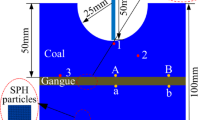 The SPH method is the earliest meshless particle method43. For the SPH method, boundary setting is critical; because the initial setting of the model is a free boundary, to improve its accuracy, virtual particles with the same density, pressure, velocity, and the opposite direction as the internal particles were respectively arranged in the two sides and the lower end of the coal model, to meet the conditions of simulating rock in an infinite domain.