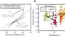 RTDs are quantum tunnelling based heterostructure devices with a non-linear current-voltage (IV) characteristic, which have drawn significant interest and research for their potential in THz electronics5,6,12. The Negative Differential Region (NDR) of RTDs, where current decreases as bias voltage increases, can compensate for losses in a resonator within an oscillator circuit5,6. Moreover, the speed of tunnelling allows such oscillators to reach THz frequencies at room temperature13,14. This makes RTDs strong contenders to bridge the ‘THz gap’12 with robust room temperature sources and detectors, enabling future applications such as high speed wireless communications for 6G15 and airport security imaging16.