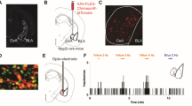 A week after TRAP procedure, mice were anesthetized with sodium pentobarbital (65 mg/kg, i.p.) or isoflurane (3%) and positioned in a stereotaxic frame. A cre-dependent AAV5 (pAAV-EF1a-double floxed-hChR2(H134R)-EYFP (1.0 × 1013 vector genomes/ml); a gift from Karl Deisseroth; Addgene viral prep # 20298-AAV5; RRID: Addgene_ 20298) was bilaterally injected into the PBN (coordinates: DV -3.6 mm, ML ± 1.4 mm, AP -4.92 mm). The injection volume was 0.25 µl, injected over 1 min using a glass needle and plunger. For CeA stimulation, optic fibers (200 μm diameter, 3.5 mm length, numerical aperture: 0.39) were implanted using stereotaxic coordinates (AP − 1.34 mm; ML ± 2.7 mm)10with the dorsal-ventral depth determined by the fiber length to target the CeA. Fibers were secured to the skull using dental cement. Mice were allowed 2 weeks to recover from surgery before behavior testing.