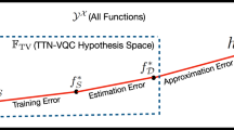 A VQC42 employs parameterized ansatz to solve optimization and parametric machine learning problems. An ansatz is a unitary operator \(U(\theta )\), where \(\theta\) represents the set of variational parameters. Let x be a classical input, a feature map encodes the classical input x into quantum state \(\rho (x)\), which is a density matrix representation of the quantum state. The quantum state \(\rho (x)\) is then transformed by this unitary operator \(U(\theta )\) from the initial state \(\rho (x)\) to a final state \(\rho (\theta , x)\) that is given by the quantum state : \(\rho (\theta , x) = U(\theta , x) \rho (x) U^\dagger (\theta , x)\). A VQC operates by optimizing in a manner similar to a neural network, where the goal is to optimize parameters to minimize a cost function and build a learning model to learn an estimator \(E_{\varvec{\theta }}(x)\) via a parameterized ansatzwith parameters \(\varvec{\theta }\). During each iteration a cost function \(C(\theta )\) is employed to approximate its gradient efficiently. The estimator \(E_{\varvec{\theta }}(x)\) is designed to predict the output \(\hat{y}\) based on the input x. Thus, the prediction for each sample i is \(\hat{y} := E_{\varvec{\theta }}(x)\). Where \(E_{\varvec{\theta }}(x) = tr(O \rho (\theta , x))\) is the estimator’s expectation value for the variational form which is calculated through the observable \(O\_j\) in the Pauli Z basis, as below using cost function in Eq. (1). A cost function \(C(\theta )\), can be represented as in Eq. (1). During the optimization process, the gradient of the cost function updates the model parameters in the direction that minimizes the cost, typically using the binary cross-entropy function. This function minimizes the error between the actual and predicted outcomes. The quantum cost function for a machine learning task, such as classification, should include: The expectation of the quantum state with respect to the input data x. The observable values, which will be summed over all the observables \(O_j\). A comparison of the quantum model’s output (after measurement) with the true labels y is done. The cost function could be written as: