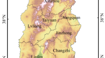 Shanxi Province, China (\(34^\circ 34.8'\)–\(40^\circ 43.4'\)N, \(110^\circ 14.6'\)–\(114^\circ 33.4'\)E) is located in the eastern LP and is bordered to the west and east by the Lvliang and Taihang mountains, respectively (Fig. 1). The natural environment within the study region is complex and includes diverse landform types. The region is characterized by uneven spatiotemporal water and heat distributions influenced by the mid-latitude temperate continental monsoon climate and geographical factors. Soil erosion and water loss are severe in Shanxi Province38,39 primarily because most areas are arid with low rainfall30 and are prone to frequent meteorological disasters. Furthermore, the coarse texture and loose structure of the soil as well as human activities weaken its erosion resistance.