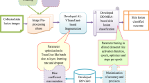 Recent advancements in automated skin cancer detection have benefited significantly from deep learning and computer vision technologies. A notable contribution to the field is the development of an FCN-based DenseNet framework specifically designed for detecting and classifying skin lesions in dermoscopic images, which demonstrates remarkable accuracy and efficiency. This is further complemented by the introduction of ensemble lightweight deep learning networks that address the challenges of complex detection backgrounds and lesion features, significantly improving lesion recognition accuracy and segmentation precision23. Utilizing Intelligent Multilevel Thresholding with Deep Learning (IMLT-DL) methods, which incorporate pre-processing, segmentation, and classification processes tailored for skin lesion analysis, exemplifies the innovative approaches pursued. Exploring skin cancer detection systems utilizing dermoscopy images to differentiate between normal and cancerous skin areas underlines the potential of image processing techniques to enhance early detection capabilities24,25. Another significant contribution is the proposition of non-invasive diagnostic systems capable of distinguishing malignant melanoma from other skin conditions, underscoring the importance of precise and accurate diagnostic frameworks26.