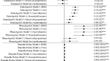 The mean chronological age at blood donation for the entire cohort was 56.4 years old. Although WTC-exposed and unexposed women were frequency-matched on age, women with WTC exposure were, on average, slightly older (mean chronological age: 58.4, standard deviation [SD]: 7.6 years) than; unexposed women (mean chronological age: 53.3, SD: 7.2 years). For each of the epigenetic clock methods, the mean estimated epigenetic age was higher among WTC-exposed vs. unexposed participants: Hannum: 68.9 vs. 63.0; Horvath: 65.3 vs. 61.1; PhenoAge: 52.0 vs. 48.0; GrimAge: 74.9 vs. 74.0. Univariate analysis showed that between WTC-exposed and unexposed women, mean chronological age, Hannum (p < 0.0001), Horvath (p < 0.0001) and PhenoAge (p = 0.0015) ages were statistically significantly different, but not for GrimAge (Table 2; Fig. 1). The average residual for aging acceleration was Hannum: 1.10 for WTC-exposed and − 1.10 for WTC-unexposed; Horvath: 0.367 for WTC-exposed and − 0.389 for WTC-unexposed; PhenoAge: 0.419 for WTC-exposed and − 0.025 for WTC-unexposed; and GrimAge: − 0.376 for WTC-exposed and 0.517 for WTC-unexposed.