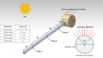 We can define the hydrostatic pressure under external conditions as \(\partial p/\partial x=-{\rho }_{nf} \, {\text{g}}\), and using the radiation Rosseland approximation30, the radiative heat flux, \({q}_{r}\), may be expressed simply as