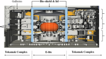 During the operation of CP-1 at a nominal power of 200 W, the radiation field intensity was recorded at various locations within the West Stand hall and in the street outside, using standard R-meters, with \(\text {BF}_3\) counters and indium foils21. We have used tripoli-4 to compute the ambient dose equivalent \(H^*(10)\) field25 in the CP-1 model. The obtained results have been normalized so that the power deposited by neutrons and photons in the Monte Carlo model of CP-1 corresponds to the nominal value of 200 W. At an unspecified location close to the pile, the instruments read \({50}\,\text {mSv}\,\text {min}^{-1}\); for tripoli-4, the dose equivalent computed in a volume of \({10} \times {10} \times {10}\,\text {cm}^{3}\) at half-height near the external surface of CP-1 yields \({0.85}\,\text {mSv}\,\text {min}^{-1}\) for the neutron contribution and \({0.045}\,\text {mSv}\,\text {min}^{-1}\) for the photon contribution. Although exposure (roentgens) and dose equivalent (sieverts) are not immediately comparable, we can perform a rough conversion from one to the other by assuming that 1 R corresponds to about \({1}\,\text {rem}={0.01}\,Gy\) in soft biological tissue; furthermore, for the conversion of dose equivalent into dose, we assume a quality factor of 1 for the photons, as customary, and a quality factor ranging between 2 (thermal) and 10 (fast) for the neutrons. The tripoli-4 estimates for the dose equivalent rates then correspond to about \({11.5}\,\text {mR}\,\text {min}^{-1}\) if we assume that all of the dose comes from fast neutrons, or to about \({45.5}\,\text {mR}\,\text {min}^{-1}\) if we assume that it comes from thermal neutrons. This argument is not rigorous, but serves the purpose of showing that the order of magnitude of the tripoli-4 simulations seem to be coherent with the measured radiation fields. Far from the pile, within the room, the measurements yielded \({6}{mR}\,{min}^{-1}\)21; the corresponding estimate for the tripoli-4 model is about \({0.3}\,\text {mSv}\,\text {min}^{-1}\) for the neutron contribution and \({0.03}\,\text {mSv}\,\text {min}^{-1}\) for the photon contribution. Applying the same argument as before, we would have roughly \({4}\,\text {mR}\,\text {min}^{-1}\) if we assume that all of the dose comes from fast neutrons, or \({16}\,\text {mR}\,\text {min}^{-1}\) if we assume that it comes from thermal neutrons. For reference, the allowed exposure limit according to the recommendations of the health physics group of the Metallurgical Laboratory was \({0.1}\, \text {Rd}^{-1}\)26.