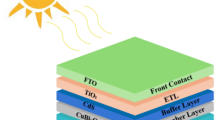 Referring to Fig. 1, the different simulation parameters used in this study are summarized in Tables 1, 2, 3 and 4. They were fixed as a combination of well-documented data3,17,23,24,25,26,27,31,32,33,34,35,36,37,38, theoretical considerations, and judicious estimations. During the simulations, an operational temperature of 300 K and a standard AM1.5G worldwide sun irradiation (1000 W/m2) were assumed by default.