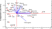 The 95% confidence ellipse represents the variation within the groups of genotypes and variables. In other words, it shows the region where it should be distributed normally as 95%. The genotypes and variables that fall outside the 95% confidence ellipse represent unique or outlier values. Therefore, it is very important to investigate the genotypes and variables that fall outside the ellipse20. In Cluster 1, genotypes ‘0601’, ‘0606’, ‘0607’, and ‘0617’ lie outside the 95% confidence ellipse and are characterized by high TAC, suggesting they may possess unique qualities. Cluster 2 includes genotypes ‘0804’, ‘0203’, ‘0806’, and ‘0608’, associated with high levels of VC, TPC, TSS, and pH. Additionally, genotypes ‘0515’, ‘0203’, ‘0609’, ‘0618’, ‘0407’, and ‘0512’, which exhibit high FI and are located within the ellipse, may highlight desirable taste profiles (Fig. 5). In Cluster 3, TA is more significant than other traits for genotypes ‘0538’, ‘0537’, ‘0529’, ‘0501’, and 0502, which are characterized by high TA. Cluster 4 is marked by TAA, with most genotypes in this cluster positioned within the central part of the ellipse (Fig. 5).