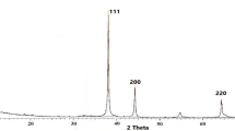 XRD analysis was performed to determine the crystalline nature of the AgNPs using a Shimadzu XDS 2400 H diffractometer with Cu Kα radiation (λ = 1.5405 Å). The instrument was operated at 40 kV and 30 mA, with a graphite monochromator and an automatic divergence slit. Samples were placed in a Lucite holder on the goniometer, and XRD patterns were recorded in the 2θ range of 0°–60° with a step size of 0.017° and a counting time of 14 s per step.