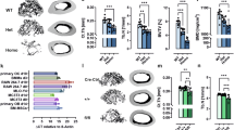 Micro-computed tomography (CT) measurements of tibia and L5 vertebrae from CKO, Cre+ and f/f mice (all age groups) were evaluated using a Skyscan µCT scanner (SkyScan 1272.). Tibia and vertebrae were cleaned of muscle tissue and stored in formalin for at least 24 h. prior to scanning. For µCT scanning and analysis of both tibia and vertebrae trabecular bone, the region of interest (ROI) was selected to include the region extending 0.9 mm distally and 0.03 mm from the physis49. Images were obtained at 70 kV X-ray tube voltage and 142 μA current, from a 0.5 mm aluminum filter. Images were reconstructed using NRecon software (Skyscan). Random movement and flat field correction were turned on and beam hardening correction was set to 38%. Total bone volume (BV mm3), tissue volume (TV mm3), bone volume fraction (BV/TV %), bone surface (BS/TV mm2), trabecular thickness (Tb Th, mm), trabecular separation (Tb Sp, mm), trabecular number (Tb N, 1/mm) and bone mineral density (BMD g/cm3) were calculated using Skyscan provided software and averaged for each age group.