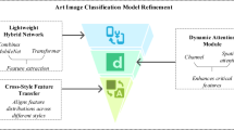 The convergence of artificial intelligence and artistic expression has inaugurated a new era of innovative applications in painting and art. Recent breakthroughs in computer-aided design have concentrated on developing sophisticated rendering and texture synthesis algorithms, particularly in the domain of image stylization. The advent of neural network-based style transfer methods, which synthesize images that amalgamate the style of one image with the content of another22, has paved the way for novel creative possibilities. This paradigm has garnered considerable attention, sparking a further investigation into deep learning-based techniques, notably through the utilization of convolutional neural networks (CNNs)23,24. The efficacy of these approaches has been extensively demonstrated in various applications, showcasing their potential to revolutionize the field of artistic expression. Recently, researchers have investigated the incorporation of GANs into image style transfer25,26,27,28, thereby expanding the frontiers of this field. GANs, a groundbreaking deep learning paradigm primarily employed for unsupervised learning and creative data generation, comprise two essential components: the generator G and the discriminator D29. Generator G learns to produce realistic novel data instances by mapping random noise to approximate the real-world data distribution, while discriminator D is trained to distinguish between authentic data and synthetic data generated by the generator. This interplay forms a dynamic game during training, driving both components to continually enhance their performance30. Ultimately, the objective is for the generator to produce high-fidelity samples that are indistinguishable from truthful data. Beyond image style transfer, GANs have found diverse applications in image restoration, music composition, video synthesis, and numerous other fields, underscoring their pivotal role in advancing generative model technology and pushing the boundaries of artificial intelligence.