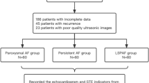 Hammerstingl, C. et al. Left atrial deformation imaging with ultrasound based two-dimensional speckle-tracking predicts the rate of recurrence of paroxysmal and persistent atrial fibrillation after successful ablation procedures. J. Cardiovasc. Electrophysiol. 23 (3), 247–255 (2012).