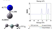 where the total energy of the resulting complex due to adsorption is \(\:{E}_{Complex}\), the \(\:{E}_{Surface}\) is the energy of each tailored surface. Energy of the gas pollutant is written as \(\:{E}_{Molecule}\) and finally, the adsorption energy of the resulting complexes is shown as \(\:{E}_{ads}.\) The HOMO and LUMO energies extractions have been performed using the Gaussian 16 software, and HOMO-LUMO plots are generated on the Chemcraft 1.6 program28. The HOMO-LUMO energy gap was calculated to assess the electronic reactivity and stability of the complexes before and after adsorption. Stability analysis was employed to evaluate donor-acceptor interactions, charge delocalization, stabilization energies within the complexes and bonding nature upon adsorption. These analyses collectively provide an understanding of the adsorption behavior, electronic reactivity, and interaction mechanisms, offering valuable insights for designing efficient adsorption materials.