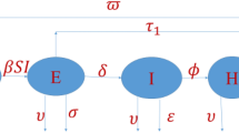 The primary goal of this section is to develop a discrete, smoothly changing NSFD scheme for model (1). The Mickens43,44 approach is remarkable for producing a discrete model that has similarities to the continuous model. For both partial and ordinary differential equations, the NSFD scheme provides a flexible way for discrete model creation and numerical solution findings. According to Shokri et al.45, discretizing the derivative and accurately estimating nonlinear terms are the two key components that make the NSFD scheme effective. \(\text{The standard notation for the first order derivative }df/dx\) is written as \(\frac{f\left(y+h\right)-f\left(y\right)}{h}\), where \(h\) represents the step size. Mickens specified that, this term can be written as \(\frac{f\left(y+h\right)-f\left(y\right)}{\varphi \left(h\right)}\), where \(\varphi \left(h\right)\) is a rising denominator function. For model (1), \({S}_{k}, {E}_{k},{I}_{k}, {H}_{k}{\text{and} R}_{k}\) are the numerical estimates of \(S\left(t\right)\),\(E\left(t\right)\),\(I(t)\), \(H\left(t\right)\text{ and }R\left(t\right)\) at \(t=kh\), where \(h\) denotes the step size and \(k\) is a nonnegative integer. Therefore, from model (1) we can express
