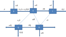 To discuss LAS of EEP, substitute \({R}_{k}\) by \(\left(\frac{q}{{u}_{1}}-{S}_{k}-{E}_{k}-{I}_{k}-{H}_{k}\right)\) in Eq. (4). The system (4) will be reduced to