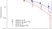 In pioneering experiments on PBCT6,19,20, natBSH at 40–80 ppm 11B was shown to significantly enhance cell killing by proton beams, as if the applied dose increased, selectively in the Bragg peak region, by up to 75%. The observed enhancements were proposed to originate from proton-11B capture reactions producing triplets of alpha particles. A pre clinical study on the proposed proton-boron capture therapy in mice with subcutaneously injected U-87 MG glioblastoma cells as a xenograft model of this tumour provided promising results39. However, several other groups have reported inconclusive or negative results in vitro, failing to observe such an enhancement in cell killing in the presence of boron10,11,12. Our previous study with DU145 prostate cancer cells and with U-87 MG human glioblastoma cells provided the first independent validation of the boron-mediated enhancements18.