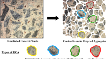 Recycled coarse aggregate (RCA) has been widely studied as a sustainable alternative to natural coarse aggregate in concrete12,17. Research has shown that the percentage replacement of RCA significantly influences concrete’s mechanical and durability properties. Kwan et al. (2012)23 and Rahal (2007)24 observed that increasing RCA content reduces compressive strength, primarily due to the adhered mortar on RCA, which weakens the interfacial transition zone. However, Martínez-Lage et al. (2012)25 reported that replacing up to 50% of natural coarse aggregate with RCA can maintain acceptable strength and workability. Additionally, treatment techniques such as pre-soaking and surface coatings have been suggested by Raman and Ramasamy (2021)26 to enhance the performance of RCA in concrete. Chakradhar et al. (2011)27 further emphasized the importance of proper mix design and treatment methods to improve the durability properties of recycled aggregate concrete (RAC), ensuring its feasibility for structural applications.