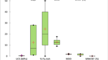 Figure 4 represents the Pearson correlation matrix of various geotechnical parameters, emphasizing the response of UCS to other variables. UCS exhibits a strong positive correlation with Ultrasonic Pulse Velocity (UPV, r = 0.9939), Bulk Density (BA, r = 0.9598), and Void Ratio (VR, r = 0.9933), indicating that higher material density and reduced voids enhance compressive strength. Additionally, UCS is moderately positively correlated with Moisture Content (MC, r = 0.6627) and Optimum Moisture Content (OMC, r = 0.5653), suggesting that proper moisture levels during compaction improve material strength. Conversely, UCS demonstrates a negative correlation with Clay Content (CC, r = − 0.6627) and Dry Density (DD, r = − 0.6914), reflecting the weakening effects of clay’s deformability and inadequate compaction in drier conditions. A significant positive relationship between UCS and Tensile Strength (T, r = 0.9397) underscores the interplay between compressive and tensile properties in material behavior. These findings highlight UCS’s dependency on physical and compaction-related parameters, reinforcing its critical role in evaluating material performance in geotechnical applications.