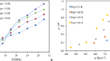 Figures S4 and Tables 3S show the correlation analysis of the EoS using two interaction parameters (vdW2) at temperatures of 308, 318, 328, and 338 K. Using the PR equation with the vdW2 mixing rule produced better results: an AARD% of 10.71, R² of 0.975 and AICc of −444.5. The results clearly show that PR model confirms the data well. The model’s tunable parameters were calculated using a simulated annealing method.