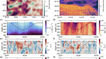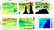 The vertical distribution of submesoscale APE budgets exhibits higher frequency temporal variations than the mesoscales. The most prominent characteristic is that the positive baroclinic canonical transfer \(\:{\varGamma\:}_{A}^{0\to\:1}\:\)shows a significant opposite correlation with the negative buoyancy conversion \(\:-{b}_{1}\) within the mixed layer (Fig. 10b). This means that amounts of submesoscale APE downscaled from the mesoscales will transfer to submesoscale KE by buoyancy conversion30,47. The vertical transport of \(\:{\varDelta\:}_{Z}{Q}_{A}^{1}\) is also relatively strong and displays pronounced stratification within the mixed layer, verifying the significance of vertical transport in the redistribution of submesoscale APE. Although illustrated as one of the main energy terms in Fig. 8c, the strength of horizontal advection \(\:{\varDelta\:}_{h}{Q}_{A}^{1}\) is relatively weak vertically. It displays overwhelming positive within the whole water column, suggesting strong APE convergence occurs within the MESM region by horizontal advection. The term \(\:{S}_{A}^{1}\) shows typical characteristics of surface intensification due to the nonlinearity of the reference stratification within the mixed layer and is usually ignored. The residual term \(\:{F}_{A}^{1}\) is characterized by rapid vertical variations with staggered positive and negative values within the upper ocean.