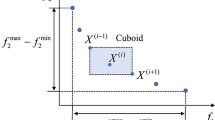 In Eq. (10), \(p\) represents the current Pareto solution set; \(dist\left( {x_{i}^{ * } ,P} \right)\) denotes the Euclidean distance between particles \(x^{ * } \in F^{ * }\) and the set \(P\) nearest solution.